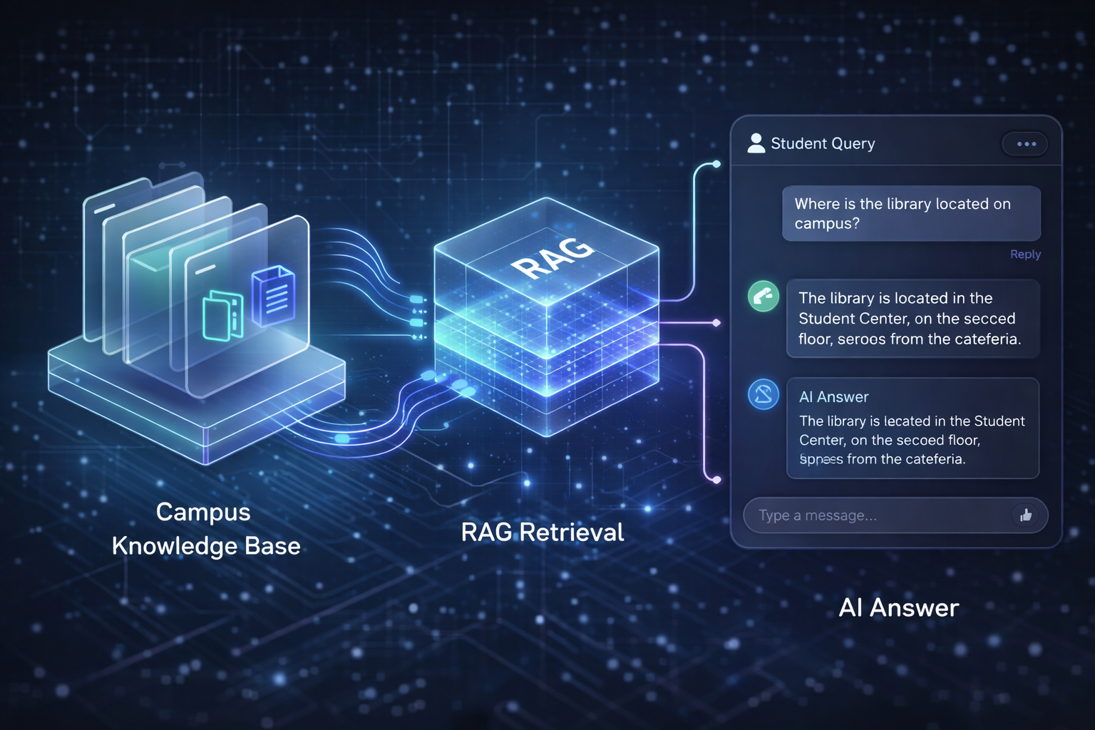 Conversational AI using Retrieval-Augmented Generation to provide instant access to campus information.